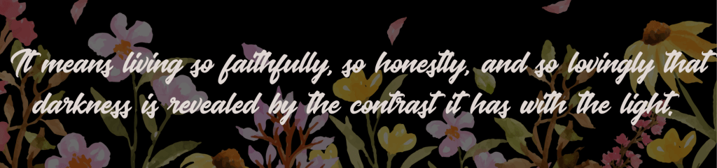Ephesians 5:11 calls believers to “take no part in the unfruitful works of darkness, but instead expose them.” Exposure does not mean humiliation or hostility. It means living so faithfully, so honestly, and so lovingly that darkness is revealed by contrast it has with the light. Whew.